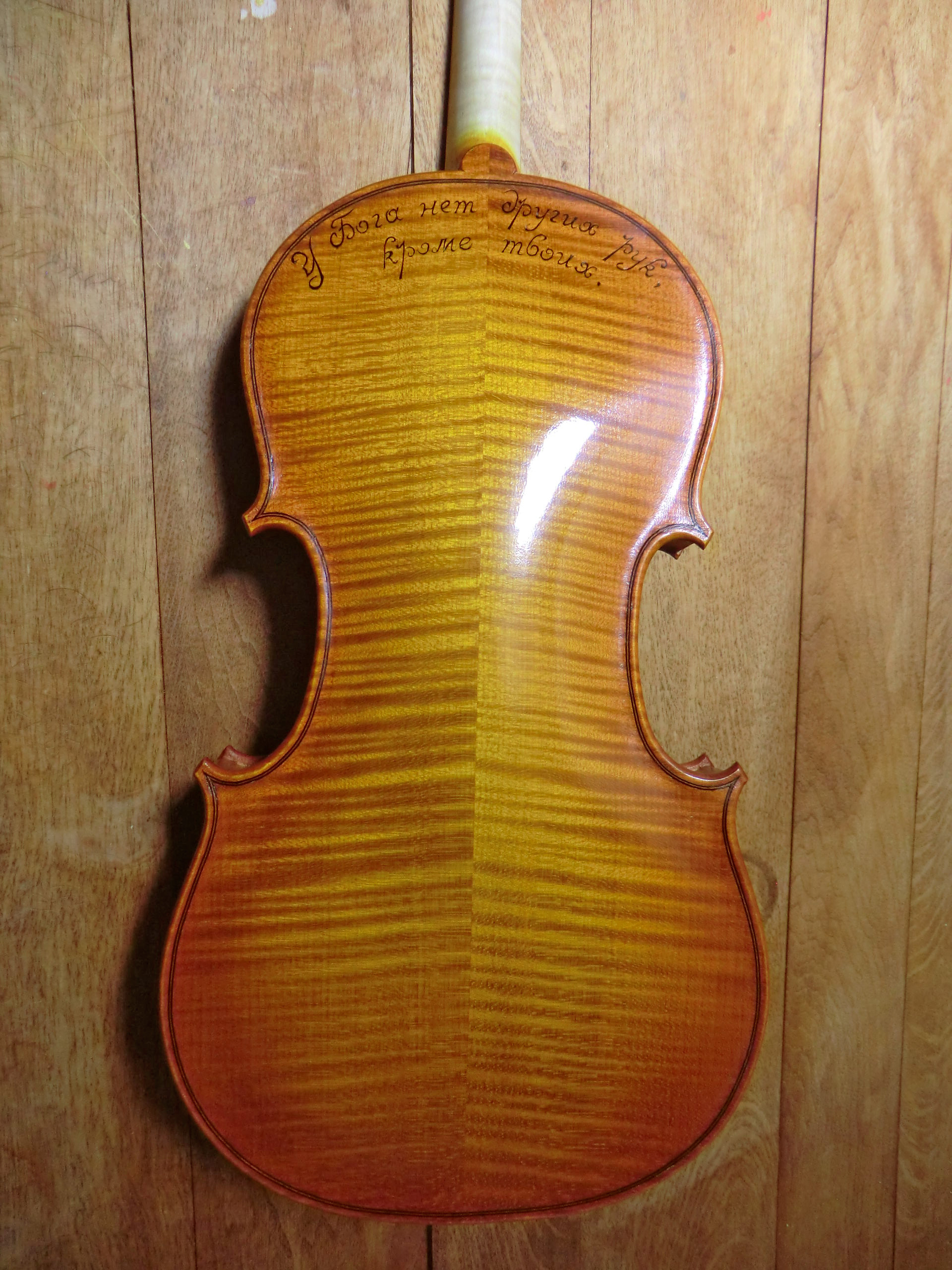 Браво!!! Великолепно!!! Остается один вопрос- какое дерево,сколько лет выдержки. Каждый музыкант покупая инструмент современного мастера опасается за звук.