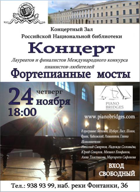 СПб., 24 ноября, 18.00. Лауреаты Международного конкурса пианистов-любителей "Фортепианные мосты"!