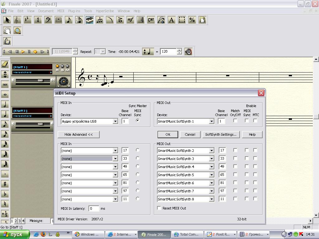 Ответ: midi-клавиатура в Finale(технический вопрос)