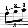 3. Это называется триоль: там четверть делится не на две восьмушки, а на три. Т.е. эта цифра относится к ритму, а не к аппликатуре.