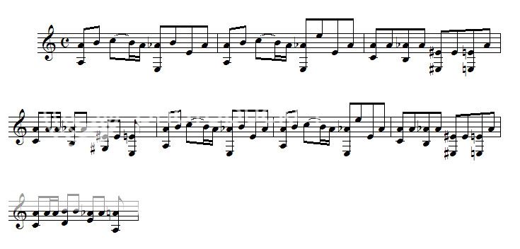 Мда... А заменить, к примеру, последнюю восьмую на четверть или поставить паузу не пробовали? А еще я некоторые бемольчики поменял на энгарм... на диезики, а ми с диезиками на фа бекарчики - так немного грамотнее будет...