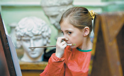 Этой девочке, по проекту закона об образовании, еще лет 5–7 надо зубрить общеобразовательные предметы, прежде чем пробовать рисовать голову Аполлона. Фото ИТАР-ТАСС