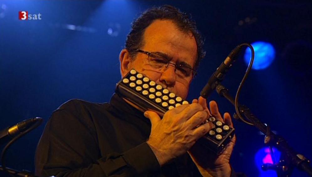 Скриншот с концерта - Ришар Гальяно играет на интересном инструменте.... ни в магазинах, ни на всяких сайтах нет ничего кроме т.н. "пианики" (а может, плохо искал... )) ). Кто знает точное название такой конструкции баяна? =)