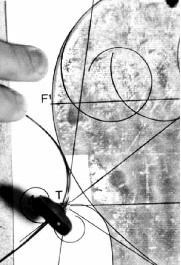 Если струна - это наиболее вероятный инструмент при моделировании скрипки Страдивари, то сегодня, при наличии компьютера, легче все делать клотоидами. А клотоиды можно менять и по размерам, и по разворотам, чтобы чертить скрипки. Можно и опорные точки менять и многое другое, что на компьютере очень легко. А вот чертить циркулем можно только для копирования уже известной формы. Когда еще можно использовать циркуль, например: мастер от руки начертил скрипку, но линии получились не очень хорошие. Тогда можно взять циркуль, эмпирически найти подходящую точку и прочертить эти кривые красивее.